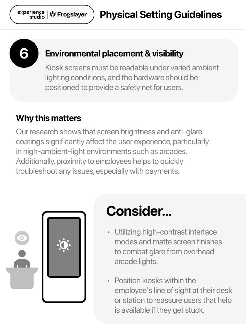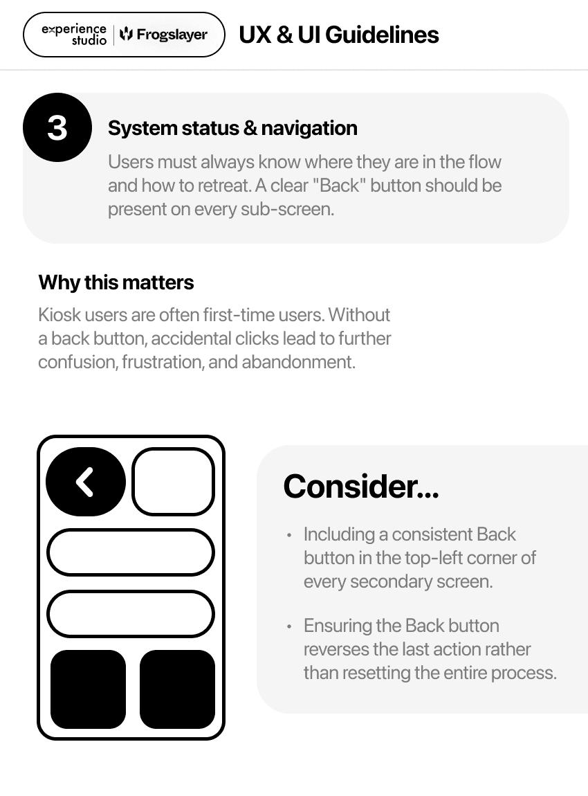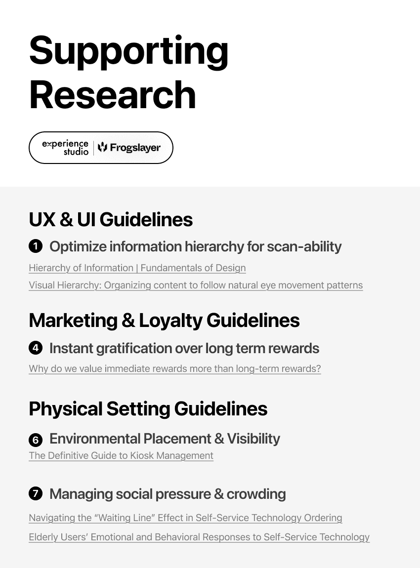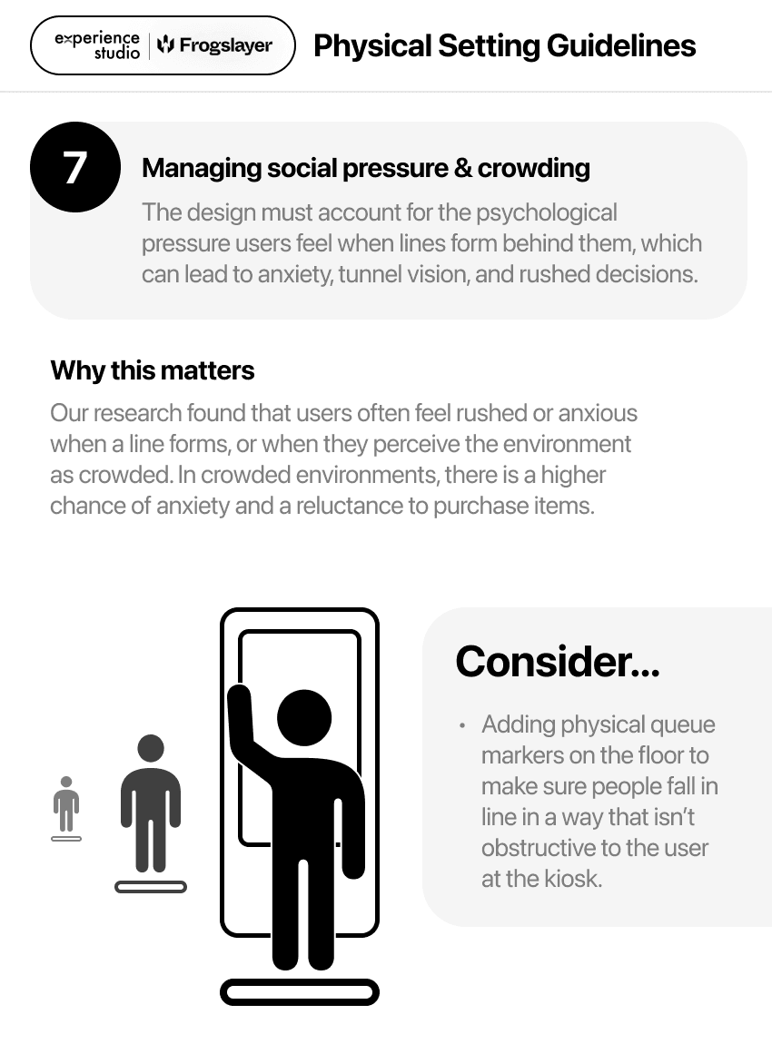 Kiosk interfaces lack standardized design guidelines. Unlike personal devices, they exist in public-facing, distracting environments.