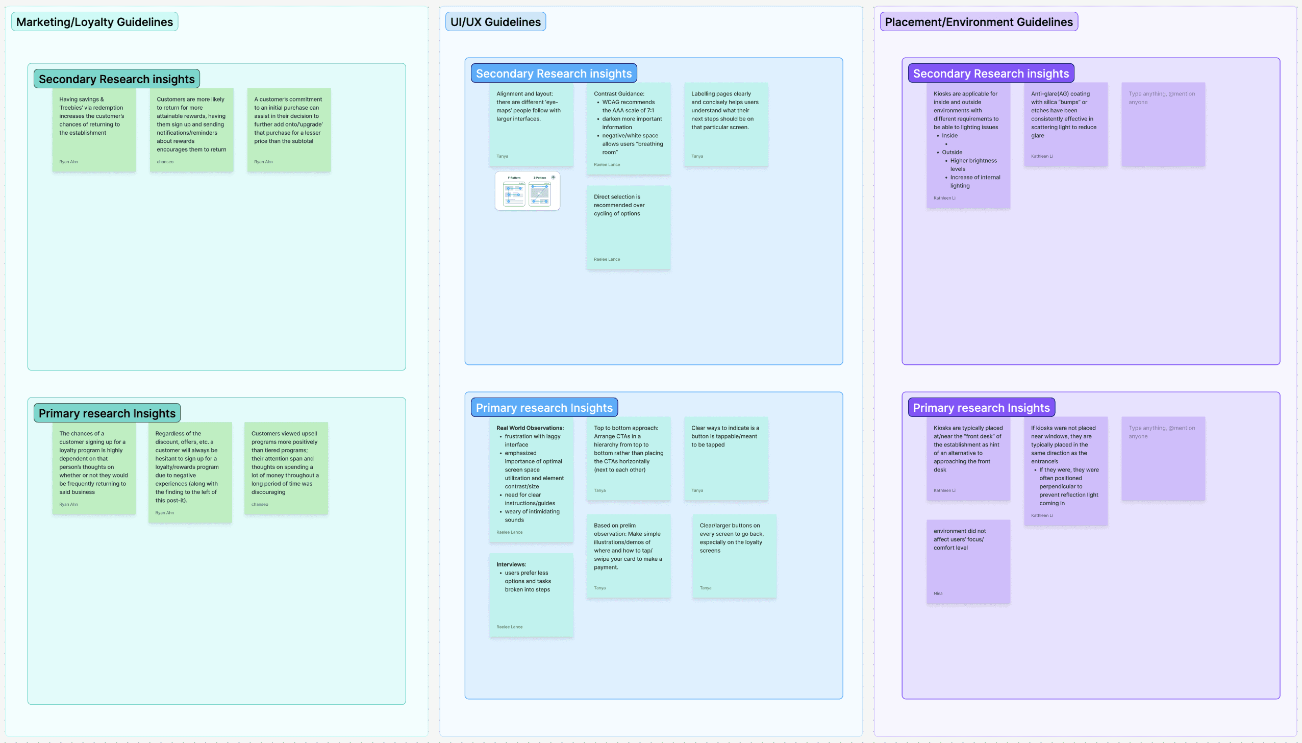 We gathered data from all stages of research and testing, then analyzed and categorized our findings into three broad themes: