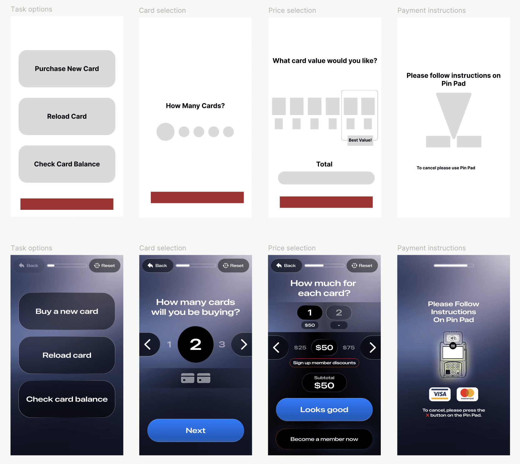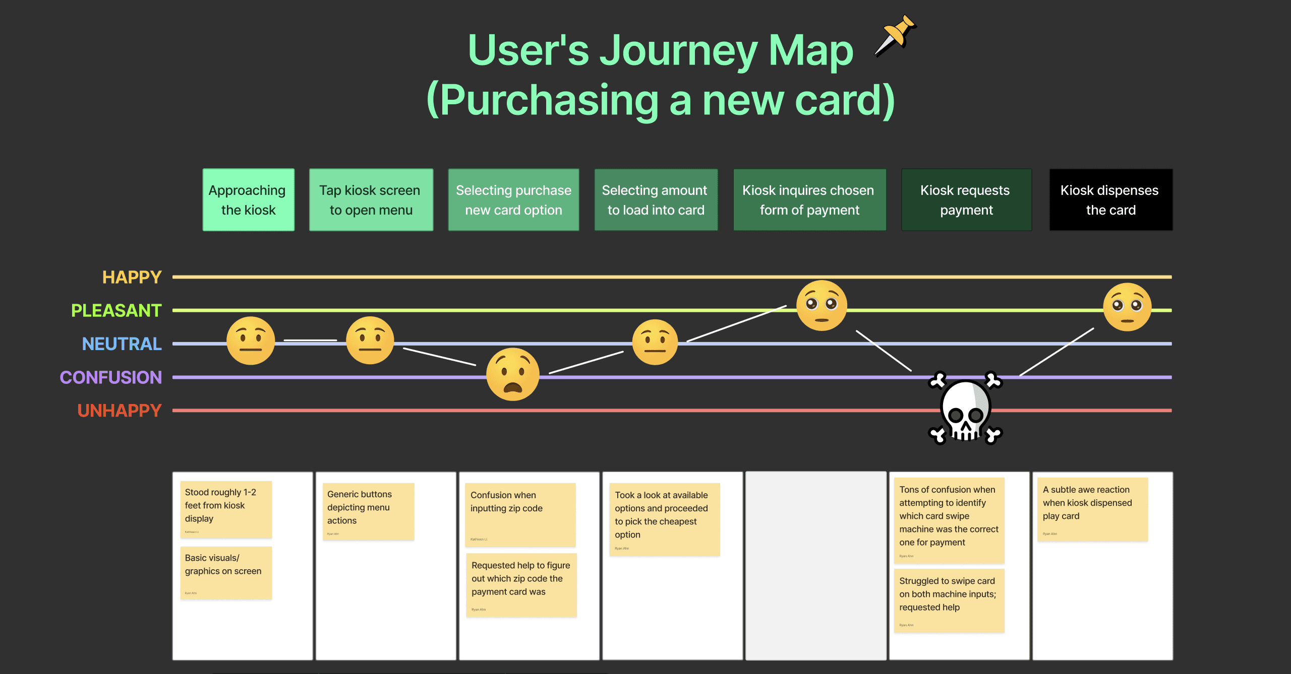 To observe exactly how customers navigate kiosks, we visited a local arcade and asked participants to walk us through purchasing and reloading a game card.
