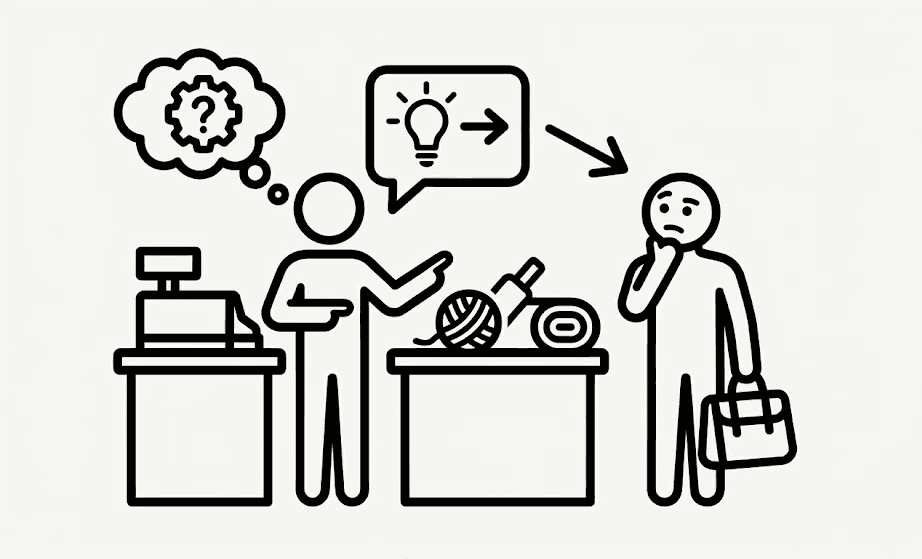 Employees acted as consultants, suggesting what to buy rather than just where to find the items. While they enjoyed these interactions, not all employees knew the nitty-gritties of crafting.